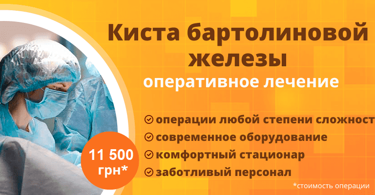 Удаление кисты бартолиновой железы, цена которой стартует от 6500 гривен проводится исключительно высококвалифицированными гинекологами в условиях современного стационара, что практически исключает риски развития послеоперационных осложнений.