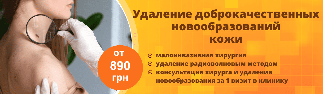 | Удаление липомы/атеромы/невуса (родинки)/папилломы (до 1 см) | 2400.00 грн | |