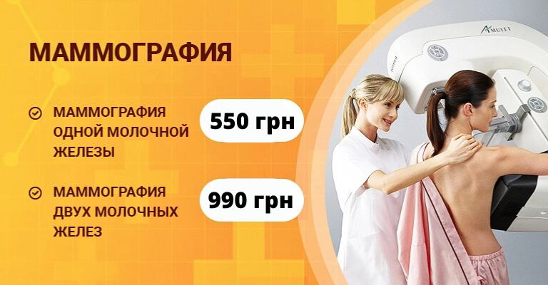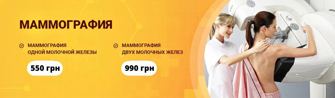 | Маммография обеих молочных желез в двух проекциях | 990.00 грн | |