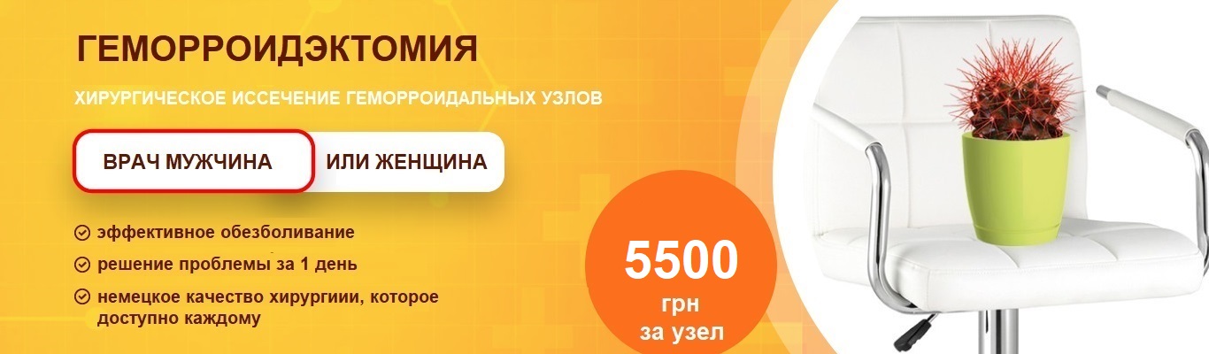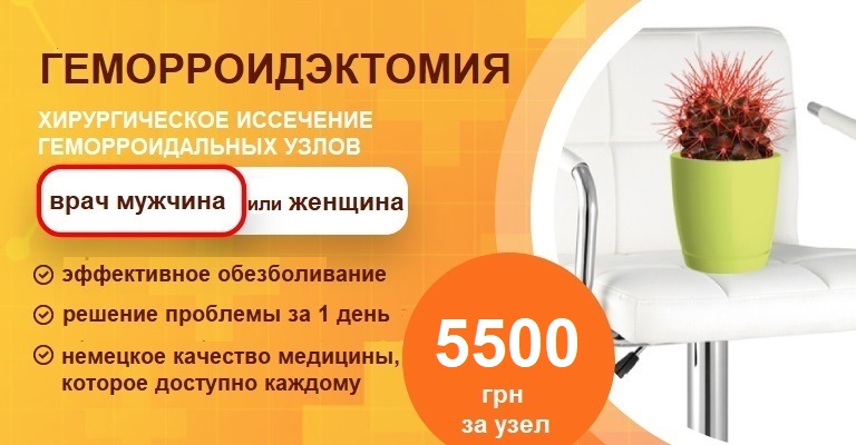 | Геморроидэктомия (1 узел) Акция | 5500.00 грн | |