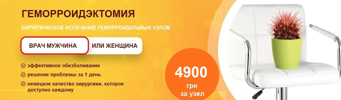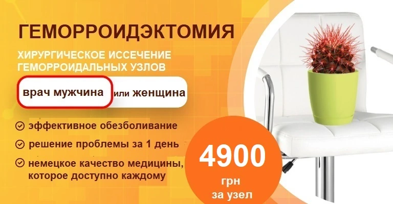 | Удаление тромба геморроидального узла (1 узел) Акция | 4900.00 грн | |