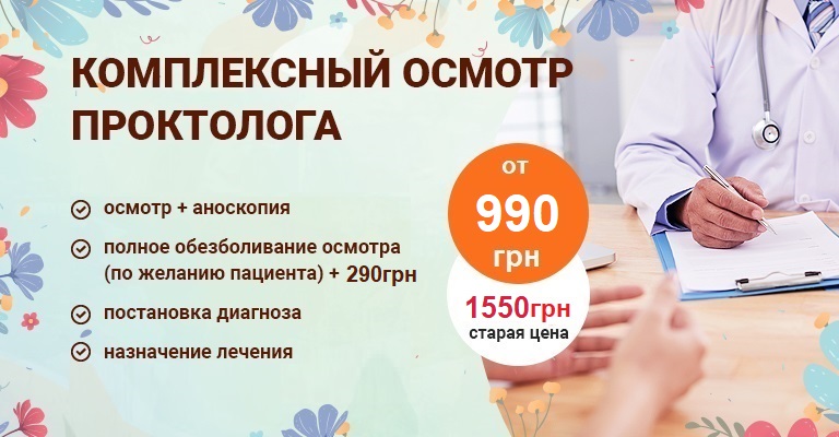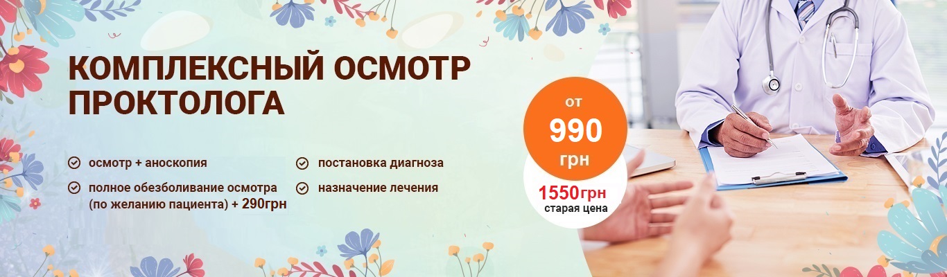 | Консультация проктолога + аноскопия Осмотр + аноскопия + постановка диагноза Назначение лечения |