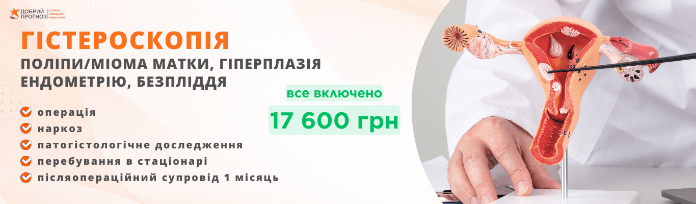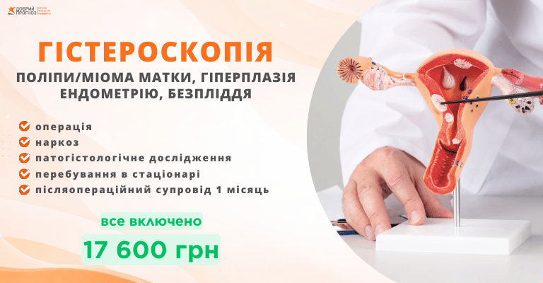 | Гістероскопічне видалення поліпа (“все включено”) | 17600.00 грн |
