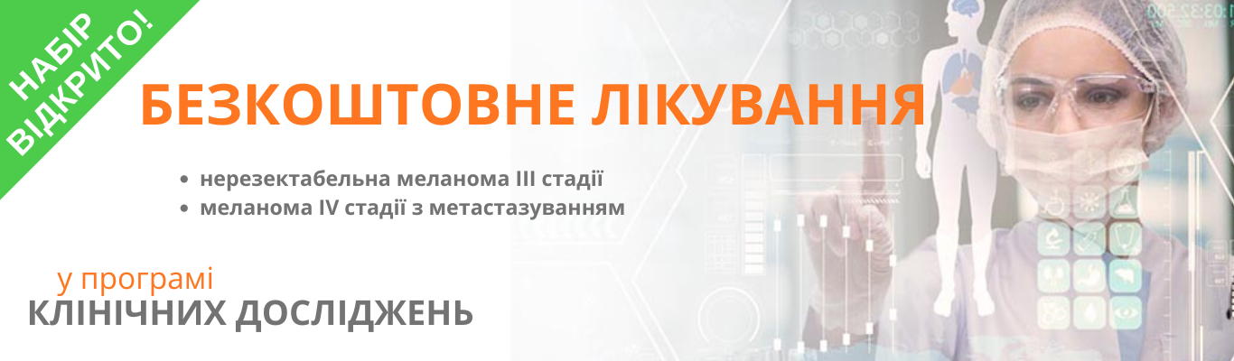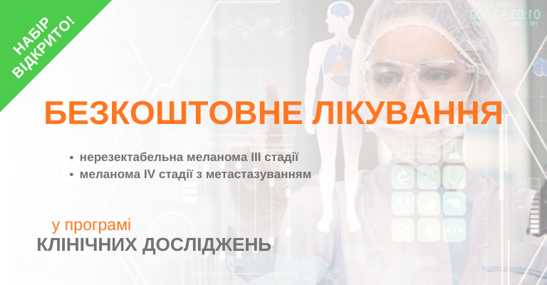 Виявлено меланому – є можливість отримати найсучасніше лікування безкоштовно! У клініці «Добрий прогноз» відкрито набір у клінічне дослідження для пацієнтів із раніше нелікованою меланомою III нерезектабельної або IV стадії.