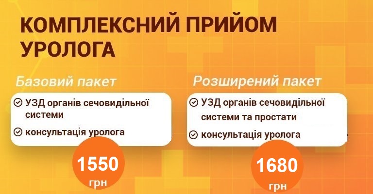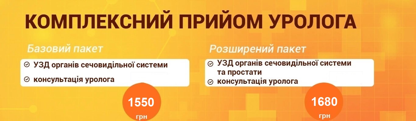 | Комплексний прийом уролога (консультація+УЗД сечовидільної системи) – 15%* | 1550.00 грн | |