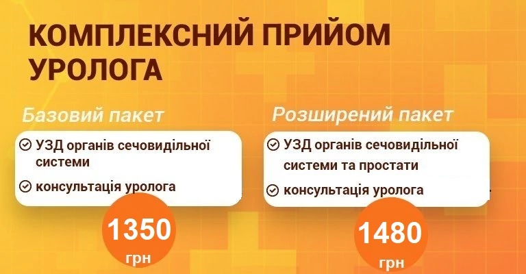 | Комплексний прийом уролога (консультація+УЗД сечовидільної системи) – 20%* | 1350.00 грн | |