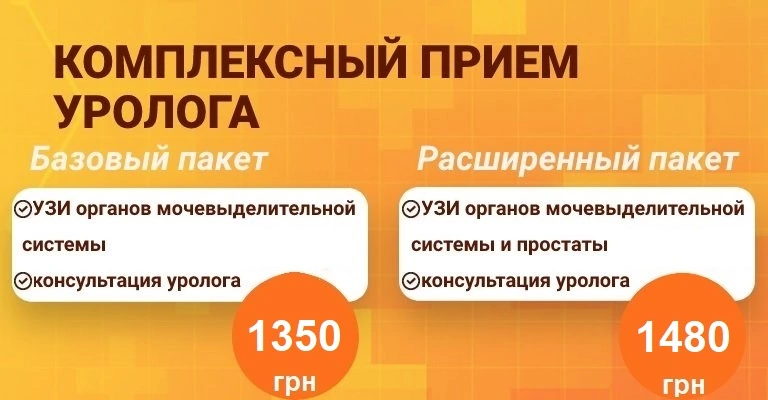| Комплексный прием уролога (консультация+УЗИ мочевыделительной системы) – 20%* | 1350.00 грн | |